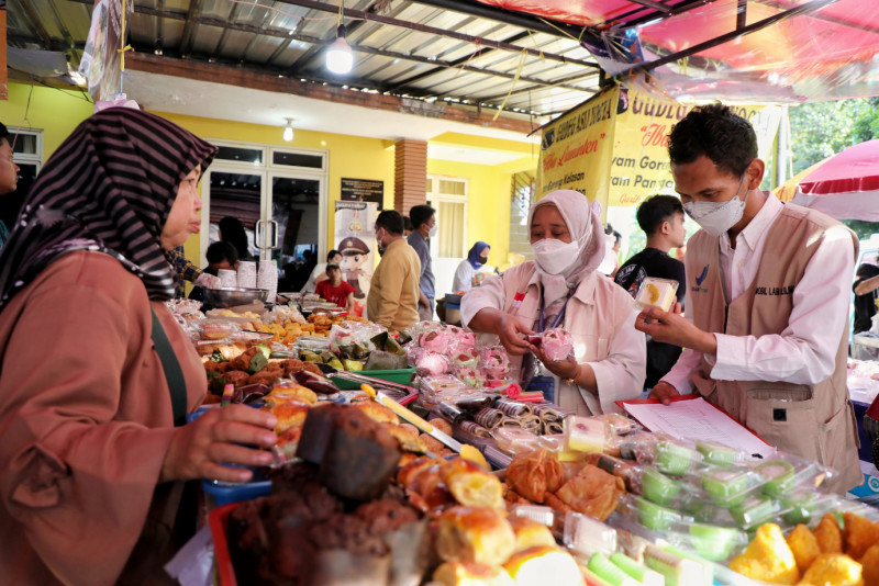 Pemerintah Kota (Pemkot) Jakarta Pusat bersama Balai Besar Pengawas Obat dan Makanan (BBPOM) DKI memeriksa produk pangan di Bazar Takjil #Ramadan Bendungan Hilir, Jalan Bendungan Hilir Raya, Tanah Abang, Jakarta Pusat, Kamis (5/4). Pemeriksaan produk pangan ini merupakan salah satu bentuk komitmen dan upaya pemerintah dalam melindungi masyarakat dari pangan yang mengandung zat berbahaya.