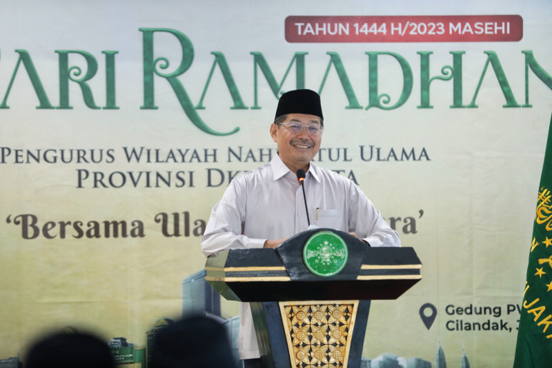 Deputi Gubernur DKI Jakarta Bidang Budaya dan Pariwisata, Marullah Matali menghadiri Safari #Ramadan Pengurus Wilayah Nahdlatul Ulama (PWNU) DKI Jakarta di sekretariat PWNU II DKI di Jalan TB Simatupang, Cilandak, Jakarta Selatan, Senin (3/4). Dalam kesempatan ini Marullah juga menanam pohon sebagai simbol gerakan wakaf satu juta pohon PWNU DKI Jakarta.