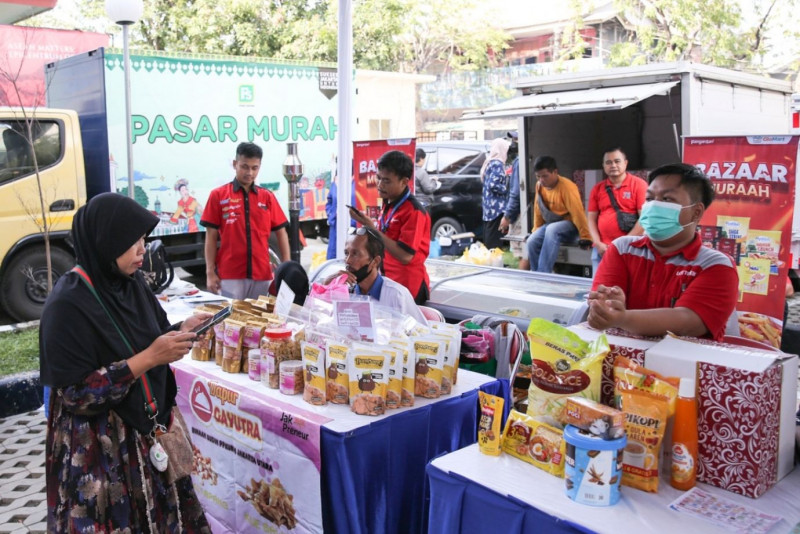Dinas Perindustrian, Perdagangan, Koperasi, Usaha Kecil dan Menengah (PPKUKM) DKI Jakarta menggelar pasar murah di Kantor Kecamatan Koja, Jakarta Utara, Kamis (30/3). Acara tersebut terselenggara atas kerja sama antara Dinas PPKUKM dan Kementerian Perdagangan RI, Pemkot Jakarta Utara, serta para pelaku usaha. #Ramadan