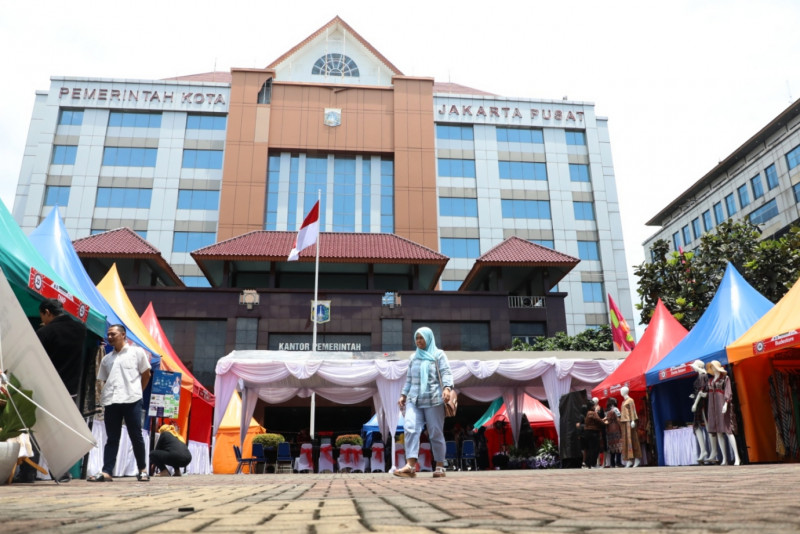 Pemerintah Kota (Pemkot) Jakarta Pusat bersama Dewan Kerajinan Nasional Daerah (Dekranasda) dan Dharma Wanita Persatuan (DWP) Jakarta Pusat menggelar Bazar #Ramadan yang diberi nama \"Bazar Jakarta Enterpeneur\" di halaman Kantor Wali Kota Jakarta Pusat Jalan Tanah Abang I, Petojo Selatan, Gambir, Jakarta Pusat, Rabu (29/3). Bazar ini diikuti 42 Jakpreneur dan perajin yang berjualan produk fesyen, kerajinan, kuliner hingga sayuran organik di 25 tenda. Bazar digelar mulai 28-31 Maret 2023 dari 08.00-15.00.