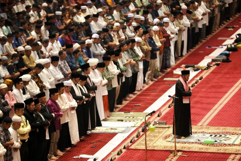 Ribuan jemaah umat Islam melaksanakan ibadah salat Jumat di Masjid Agung At-Tin, Kecamatan Makasar, Jakarta Timur, Jumat (24/3). Pelaksanaan ibadah salat Jumat kali ini merupakan yang pertama pada bulan Ramadan 1444 Hijriah. #Ramadan