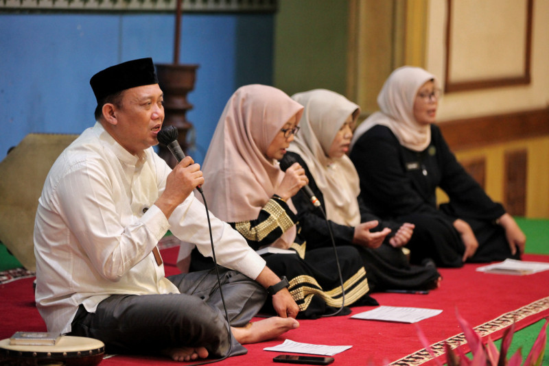 Tim Penggerak Pemberdayaan Kesejahteraan Keluarga (TP PKK) menggelar kegiatan pengajian dan munggahan di gedung PKK Melati Jaya, Jalan Kebagusan, Pasar Minggu, Jakarta Selatan, Jumat (17/3).Pengajian digelar secara daring dan luring dengan diikuti kader PKK di lima wilayah ibukota. (Foto: Andri Widiyanto/beritajakarta.id)