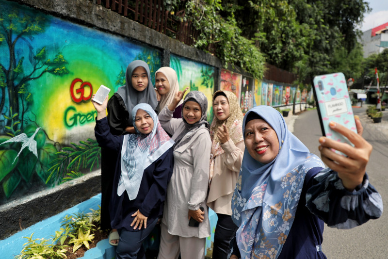 Melihat kawasan unggulan di Gang H Soleh Pedo di RT 02/01, Kelurahan Tanjung Duren Selatan (TDS), Kecamatan Grogol Petamburan, Jakarta Barat, Kamis (16/3). Penataan dengan pembuatan mural-mural bertema Jakarta dan pembuatan taman vertikal yang ditanami tanaman hias, toga, dan pohon produktif seperti cabai, tomat, terung dan lain-lain.(Foto: Andri Widiyanto/beritajakarta.id)