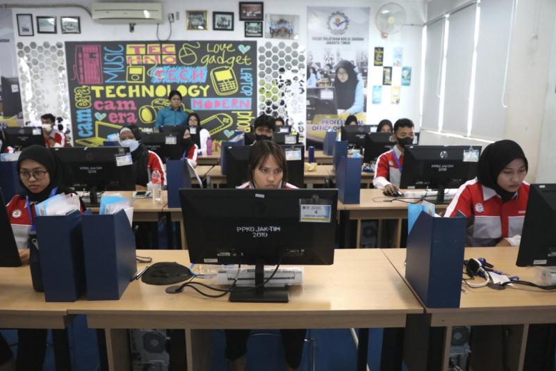 20 peserta pelatihan operator komputer melakukan uji kompetensi okupasi operator komputer muda berstandar Badan Sertifikasi Nasional Profesi (BNSP) di Pusat Pelatihan Kerja Daerah (PPKD) Jakarta Timur, Jalan H Naman No.1, Pondok Kelapa, Duren Sawit, Jakarta Timur, Rabu (15/3). Kegiatan ini merupakan tindaklanjut pelatihan operator komputer yang sudah dilaksanakan sejak 6 Februari - 13 Maret 2023 lalu. Uji kompetensi dilaksanakan selama dua hari mulai dari tanggal 14 maret hingga 15 maret 2023. (Foto: Mochamad Tresna Suheryanto/beritajakarta.id)