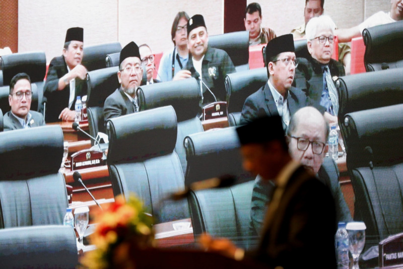 Penjabat (Pj) Gubernur DKI Jakarta, Heru Budi Hartono menyampaikan pidato penjelasan terhadap dua Raperda dalam Rapat Paripurna DPRD DKI Jakarta di Ruang Rapat Paripurna DPRD, Jakarta Pusat, Senin (13/3). Kedua Raperda yang telah diusulkan oleh eksekutif untuk dibahas dan disahkan oleh DPRD DKI Jakarta yakni terkait pengelolaan air limbah domestik dan rencana umum energi daerah (RUED). (Foto: Nugroho Sejati/beritajakarta.id)