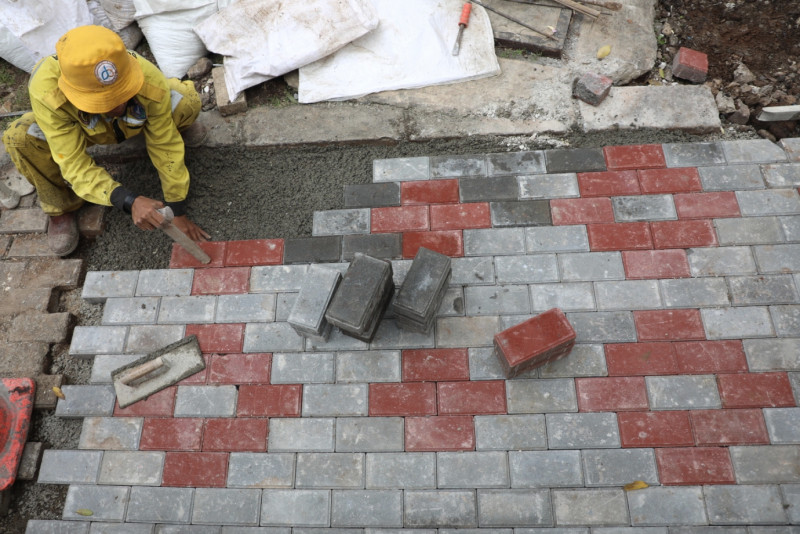 Satuan Pelaksana (Satpel) Bina Marga Mampang Prapatan memperbaiki trotoar di Jalan Kapten Tendean, Kuningan Timur, Jakarta Selatan, Kamis (9/3). Perbaikan sepanjang 30 meter dan lebar 150 sentimeter untuk mengembalikan fungsi trotoar dan meningkatkan kenyamanan perjalan kaki. (Foto:Mochmad Tresna Suheryanto/beritajakarta.id)