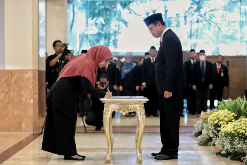 Sekretaris Daerah (Sekda) DKI Jakarta, Joko Agus Setyono melantik dan pengambilan sumpah sebanyak 607 pejabat administrator dan pengawas di Balai Kota, Jumat (10/3). Pelantikan dan pengambilan sumpah pejabat administrator dan pengawas di lingkungan Pemerintah Provinsi DKI Jakarta merupakan tindaklanjut dari Peraturan Gubernur Nomor 57 Tahun 2022 tentang organisasi dan tata kerja Perangkat daerah. (Foto: Andri Widiyanto/beritajakarta.id)