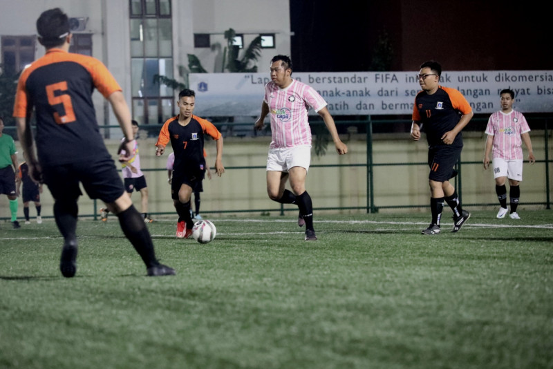 Kesebelasan Dinas Komunikasi, Informatika, dan Statistik (Diskominfotik) DKI Jakarta dan kesebelasan Dinas Kependudukan dan Pencatatan Sipil (Disdukcapil) DKI Jakarta melakukan pertandingan persahabatan di Lapangan Sepakbola Wijaya Kusuma atau Romsol, di Jalan Anggrek Garuda, Kelurahan Kemanggisan, Kecamatan Palmerah, Jakarta Barat, Jumat (10/3) malam. Pertandingan dimenangkan oleh Kesebelasan Dinas Komunikasi, Informatika, dan Statistik (Diskominfotik) DKI Jakarta dengan skor telak 6-3. (Foto:Mochmad Tresna Suheryanto/beritajakarta.id)