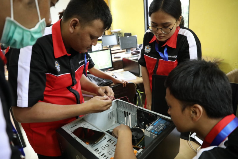 Sebanyak 20 peserta mengikuti kegiatan pelatihan Teknik Pemeliharaan dan Perbaikan Komputer di Pusat Pelatihan Kerja Daerah (PPKD) Jakarta Timur, Jalan H Naman No.1, Pondok Kelapa, Duren Sawit, Jakarta Timur, Kamis (9/3). Para peserta pelatihan diajarkan bagaimana cara merawat, merakit, memperbaiki perangkat komputer, melakukan instalasi sistem operasi dan perangkat lunak serta merancang dan melakukan konfigurasi jaringan komputer. Pelatihan ini digelar selama 45 hari mulai dari tanggal Enam Februari hingga Satu April 2023. (Foto:Mochmad Tresna Suheryanto/beritajakarta.id)