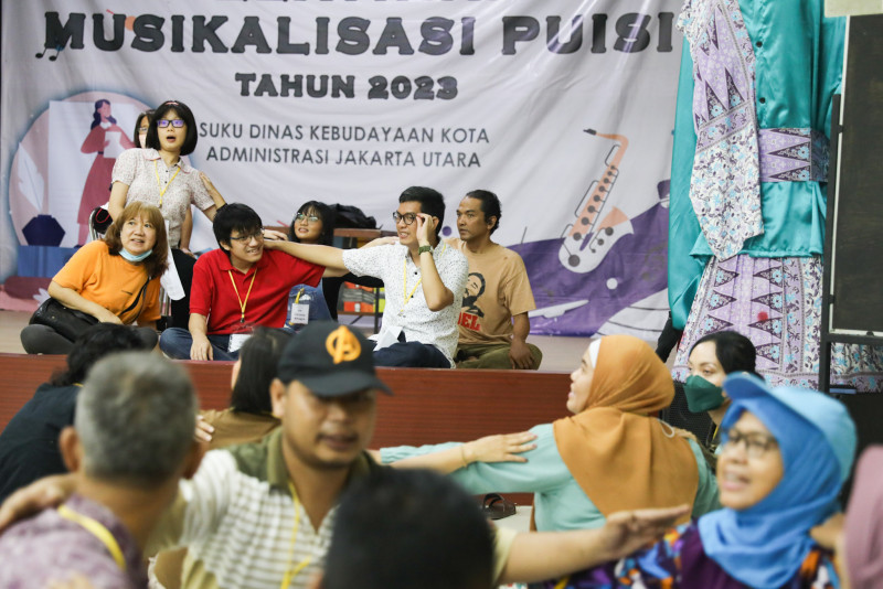 Suku Dinas (Sudin) Kebudayaan Jakarta Utara menggelar pelatihan seni musikalisasi puisi untuk penyandang disabilitas di Gedung Aki Tirem, Pusat Pelatihan Seni Budaya (PPSB), Jalan Yos Sudarso, Tanjung Priok, Jakarta Utara, Rabu (1/3). Sebanyak 30 peserta yang terdiri dari penyandang tunanetra, tunarungu, tunawicara, tunadaksa, dan tunagrahita tersebut mengikuti pelatihan selama sepuluh hari. (Foto: Nugroho Sejati/beritajakarta.id)