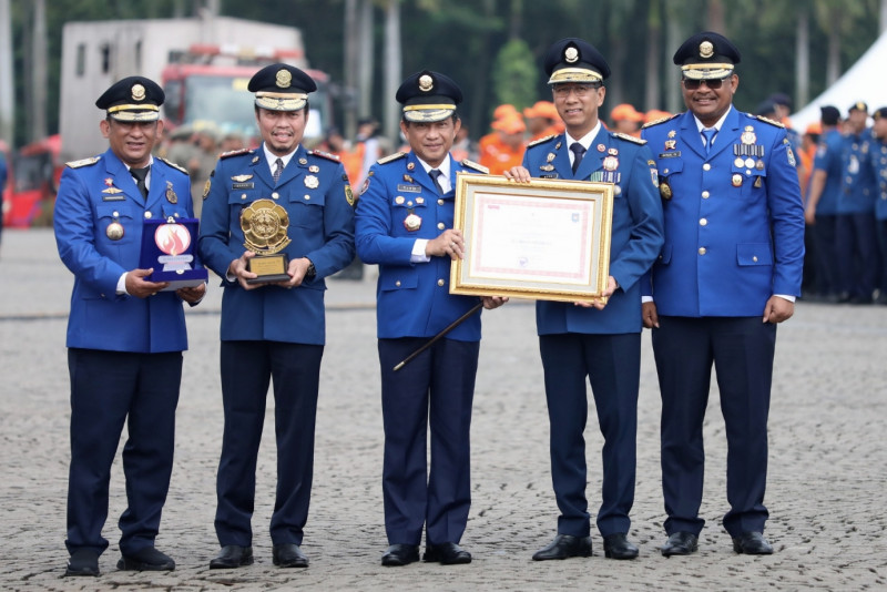 Penjabat (Pj) Gubernur DKI Jakarta, Heru Budi Hartono menghadiri upacara Peringatan HUT ke-104 Pemadam Kebakaran dan Penyelamatan se-Indonesia di Sisi Selatan Silang Monumen Nasional (Monas), Gambir, Jakarta Pusat, Rabu (1/3). Bertindak sebagai inspektur upacara yakni Menteri Dalam Negeri RI, Tito Karnavian dan Kepala Dinas Penaggulangan Kebakaran dan Penyelamatan (Gulkarmat) DKI Jakarta Satriadi Gunawan sebagai pemimpin upacara. (Foto: Mochamad Tresna Suheryanto/beritajakarta.id)