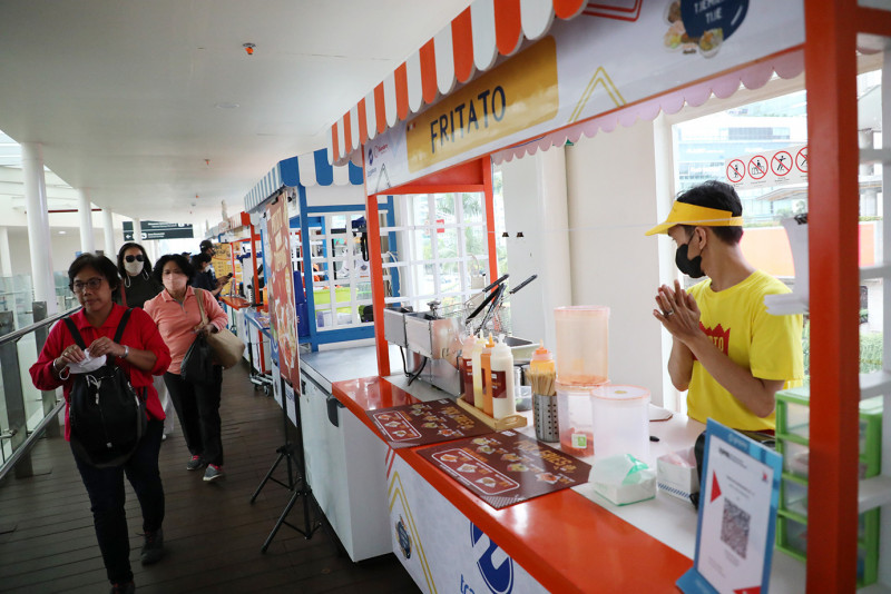 Menikmati sajian kuliner dalam Festival Tjemilan Tije yang digelar di Halte Transjakarta Bundaran Hotel Indonesia (HI), Jakarta Pusat. Festival yang berlangsung dari tanggal 23 Februari hingga 19 Maret 2023 ini menyuguhkan beragam makanan dan minuman kekinian yang siap jadi teman ngobrol kalian. (Foto: Mochamad Tresna Suheryanto/beritajakarta.id)