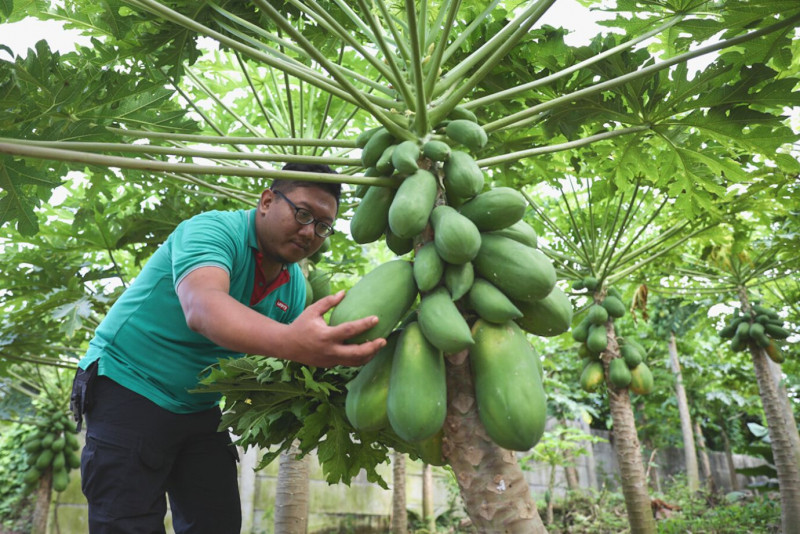 Sejumlah anggota Kelompok Tani (Poktan) Taruna Jaya melakukan budi daya Pepaya California di lahan tidur RT 08/0 6, Kelurahan Karet Tengsin, Tanah Abang, Jakarta Pusat, Senin (20/2). Pemanfaatan lahan tidur seluas 600 meter persegi sebagai sarana pertanian perkotaan (urban farming) tersebut mendapatkan binaan dari Suku Dinas Ketahanan Pangan, Kelautan, dan Pertanian (Sudin KPKP) Jakarta Pusat. (Foto: Nugroho Sejati/beritajakarta.id)
