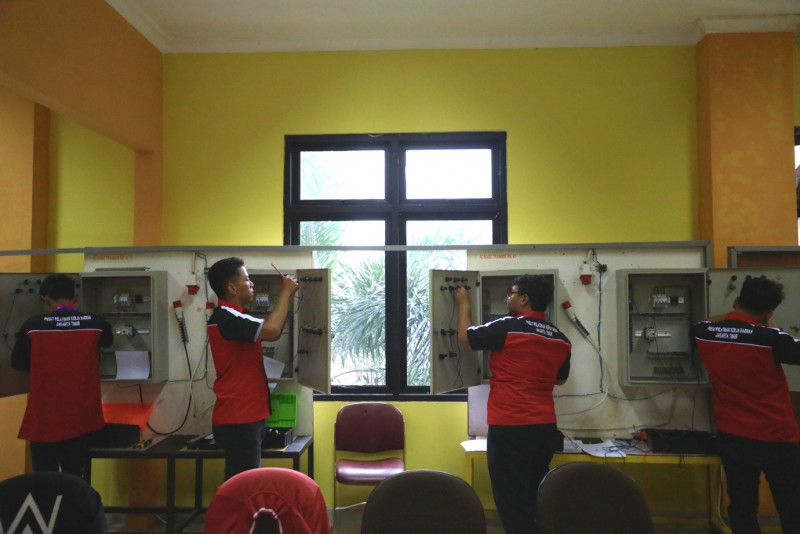 Sebanyak 20 peserta mengikuti pelatihan Teknik Elektro Otomasi di Pusat Pelatihan Kerja Daerah (PPKD) Jakarta Timur, Jl. H Naman No.1, Pondok Kelapa, Duren Sawit, Jakarta Timur, Jumat (17/2). Para peserta diberi pelatihan membaca gambar teknik, pemasangan, pengoperasian dan perbaikan/maintenance Elektronika Komunikasi secara maksimal. (Foto:Mochamad Tresna Suheryanto/ beritajakarta.id)
