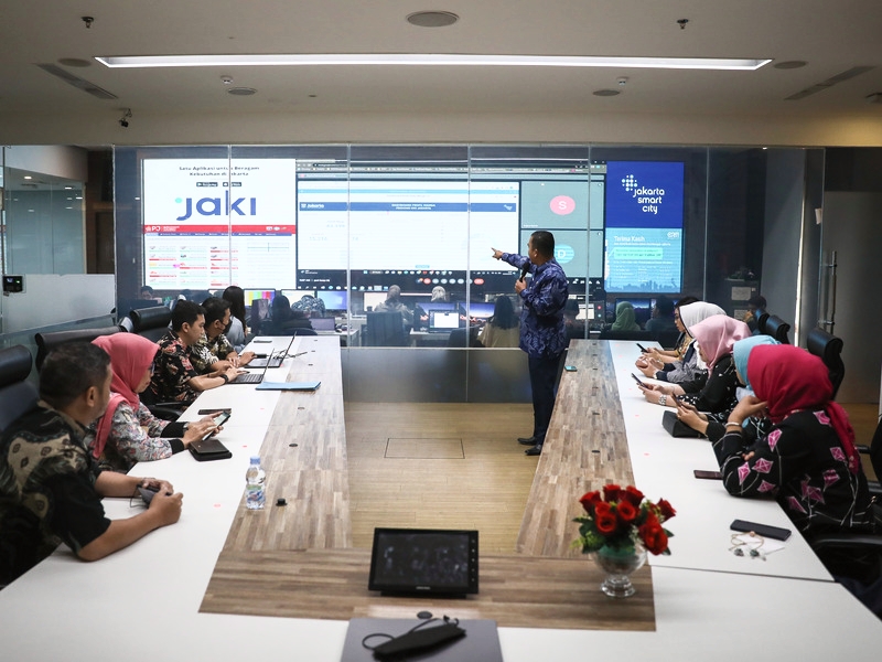 BLUD Jakarta Smart City (JSC) menerima kunjungan perwakilan Pemerintah Kota (Pemkot) Administrasi Jakarta Utara yang diinisiasi oleh Suku Dinas Komunikasi, Informasi dan Statistik (Sudin Kominfotik) Jakarta Utara, Kamis (9/2).Kunjungan tersebut dalam rangka pengenalan secara mendalam tentang cara kerja pengelolaan data pada super apps JAKI, Cepat Respons Masyarakat (CRM), dan digital dashboard inovasi Dinas Kominfotik DKI Jakarta. (Foto: Nugroho Sejati/beritajakarta.id)