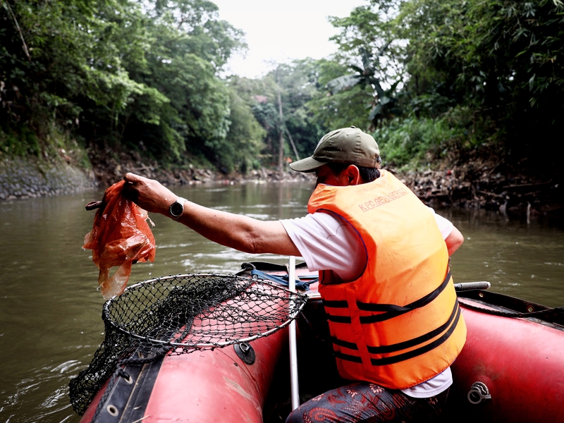Komunitas Peduli Ciliwung Gerakan Masyarakat Bersih Sungai Ciliwung (KPC Gema Bersuci) rutin melakukan pelestarian lingkungan di bantaran Sungai Ciliwung, Pejaten Timur, Kecamatan Pasar Minggu, Jakarta Selatan, sejak tahun 2011. KPC Gema Bersuci terbentuk atas inisiatif seluruh anggota Lembaga Musyawarah Kelurahan (LMK) Pejaten Timur yang bertujuan untuk menjaga kebersihan dan kelestarian Sungai Ciliwung dan lingkungan sekitarnya. (Foto: Nugroho Sejati/beritajakarta.id)