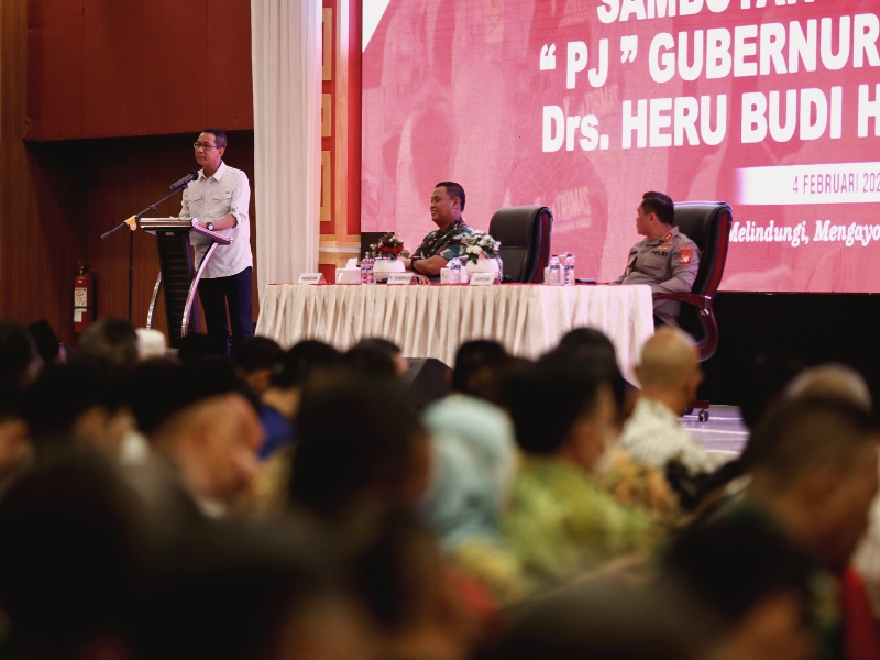 Penjabat (Pj) Gubernur DKI Jakarta, Heru Budi Hartono menghadiri Evaluasi dan Komitmen Kerja Polda Metro Jaya Tahun 2023 di Gedung Nusantara Hall ICE BSD City, Tangerang, Banten, Senin (6/2). Dalam evaluasi dan komitmen kerja ini, Pj Gubernur meminta dukungan Polda Metro Jaya dalam pelaksanaan program kerja Pemerintah Provinsi DKI Jakarta tahun 2023 seperti untuk mengantisipasi segala bentuk potensi gangguan keamanan dan ketertiban masyarakat (kamtibmas).(Foto: Nugroho Sejati/beritajakarta.id)