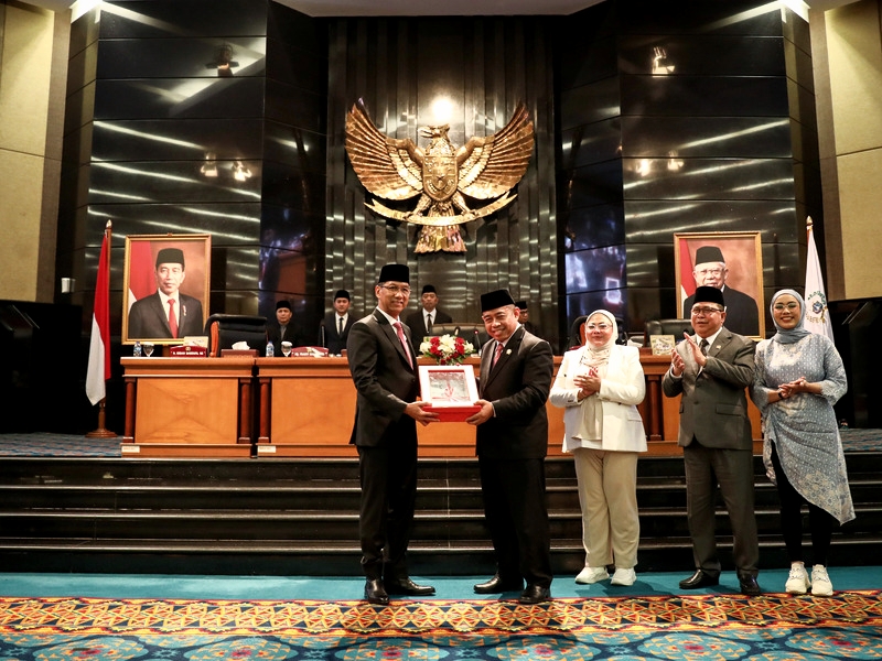 Penjabat (Pj) Gubernur DKI Jakarta, Heru Budi Hartono menghadiri Rapat Paripurna DPRD DKI Jakarta di Ruang Rapat Paripurna DPRD DKI Jakarta, Gambir, Jakarta Pusat, Senin (6/2). Rapat Paripurna ini beragendakan pengesahan Rancangan Peraturan Daerah (Raperda) Perubahan Bentuk Hukum Perseroan Terbatas Penjaminan Kredit Daerah Jakarta (PT Jamkrida), menjadi PT Jamkrida Perseroan Daerah (Perseroda).(Foto: Nugroho Sejati/beritajakarta.id)