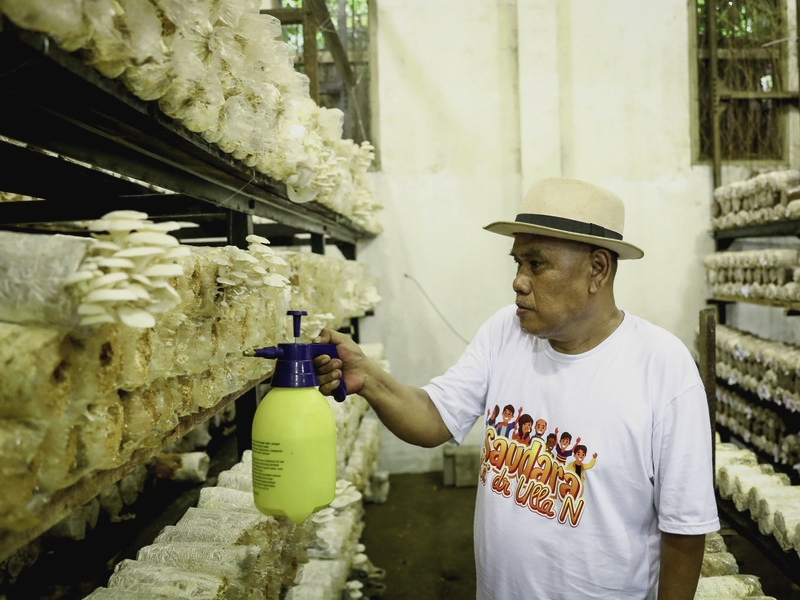 Buhari, anggota Lembaga Musyawarah Kelurahan (LMK) perwakilan RW 04 Kebon Baru, Kecamatan Tebet, membudidayakan jamur tiram di Jalan Kampung Melayu Besar 1 RT 09/01, Tebet, Jakarta Selatan, Jumat (3/2). Pembudidayaan jamur tiram tersebut sudah berjalan sejak bulan Desember 2022 dan berhasil panen sekitar 5 kilogram jamur setiap harinya. (Foto: Nugroho Sejati/beritajakarta.id)