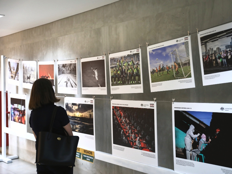 Pewarta Foto Indonesia (PFI) bekerja sama dengan Kedutaan Besar Australia menyelenggarakan pameran foto \"Bangkit dari Pandemi\" di Perpustakaan Jakarta, Taman Ismail Marzuki (TIM) Cikini, Menteng, Jakarta Pusat, 31 Januari sampai 5 Februari 2023. Dalam Pameran foto ada 40 karya foto yang dipamerkan terdiri dari, 38 foto tunggal dan dua foto cerita karya pewarta foto Indonesia dan Australia ini didukung oleh Dinas Perpustakaan dan Kearsipan (Dispusip) DKI Jakarta lewat penyediaan tempat. (Foto: Nugroho Sejati/beritajakarta.id)