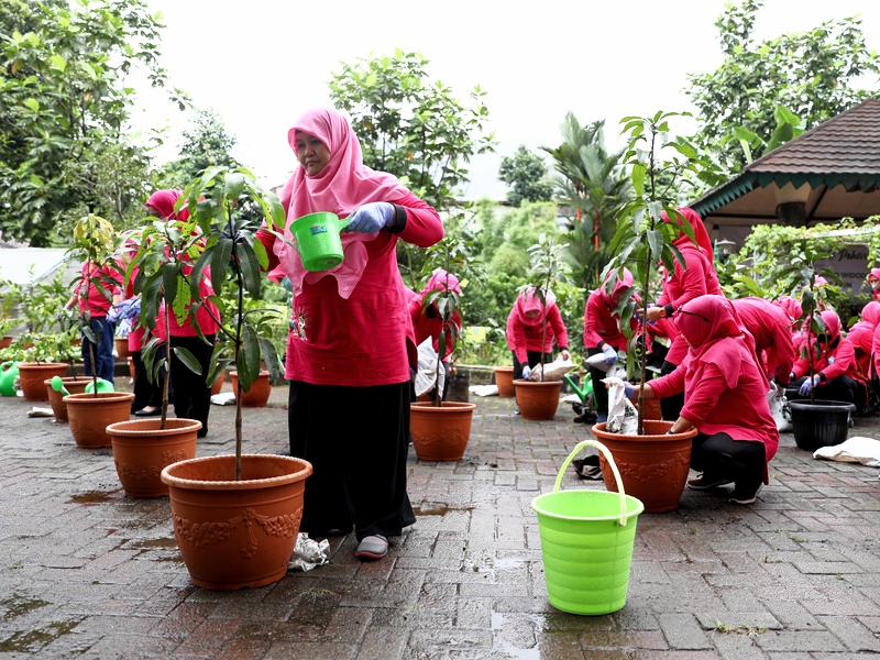 Penjabat (Pj) Ketua Tim Penggerak Pemberdayaan dan Kesejahteraan Keluarga (TP PKK) DKI Jakarta, Mirdiyanti Heru Budi Hartono menghadiri penanaman seribu pohon bersama Ibu Negara RI, Iriana Joko Widodo dan Wury Ma’ruf Amin yang berlangsung secara virtual di gedung TP PKK Melati Jaya, Jalan Kebagusan Raya, Kelurahan Ragunan, Kecamatan Pasar Minggu, Jakarta Selatan, Rabu (1/2). Dalam kesempatan ini Mirdiyanti juga menyapa para anggota TP PKK DKI Jakarta mulai dari tingkat kota, kabupaten, kecamatan dan kelurahan yang juga melakukan penanaman dari wilayahnya masing-masing.(Foto: Nugroho Sejati/beritajakarta.id)