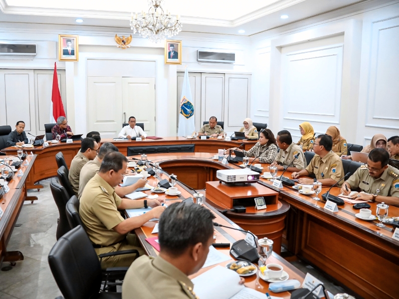 Penjabat (Pj) Gubernur DKI Jakarta, Heru Budi Hartono memimpin Rapat Terbatas (Ratas) tentang penanganan kemiskinan dan stunting di Balai Kota DKI Jakarta, Senin (30/1). Rapat diikuti jajaran Organisasi Perangkat Daerah (OPD) dan stakeholder terkait. (Photo: Mochamad Tresna Suheryanto/beritajakarta.id)