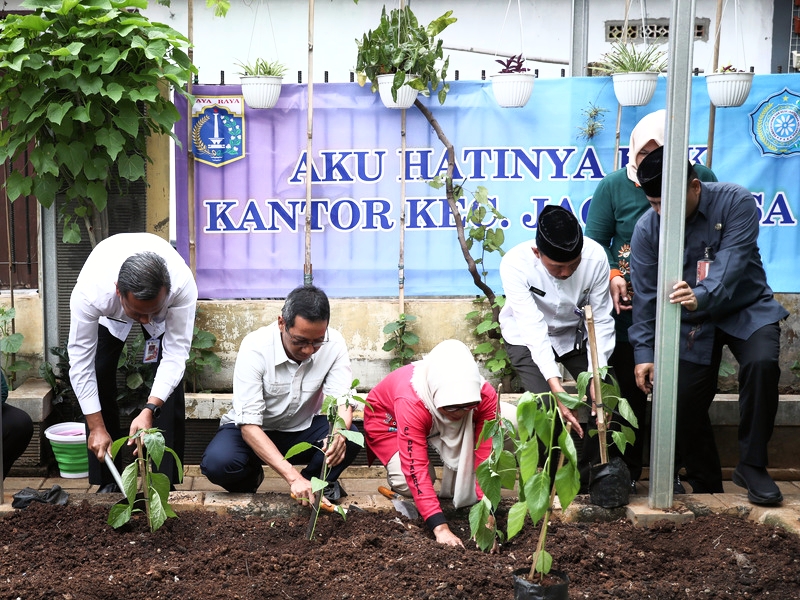 Penjabat (Pj) Gubernur DKI Jakarta, Heru Budi Hartono menanam pohon serta memanen ikan dan sayur di Kantor Kecamatan Jagakarsa, Jakarta Selatan, Jumat (27/1). Pj Gubernur juga menyapa warga sekaligus meninjau hasil penataan kawasan di Jalan Raya Jagakarsa RT 006/04, Kecamatan Jagakarsa. (Foto: Nugroho Sejati/beritajakarta.id)