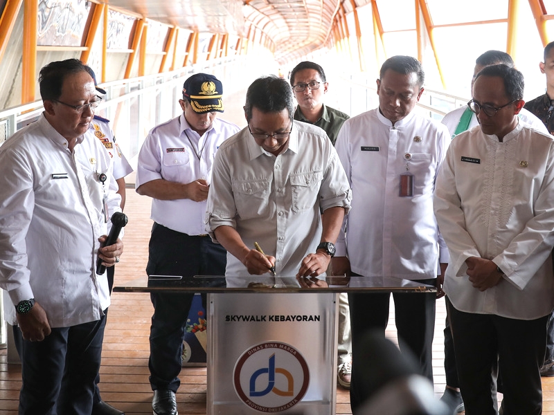 Penjabat (Pj) Gubernur DKI Jakarta, Heru Budi Hartono meresmikan Skywalk Kebayoran, Jakarta Selatan, Jumat (27/1). Skywalk Kebayoran dibangun sebagai sarana integrasi antara Stasiun KRL Kebayoran, Halte Transjakarta Velbak, dan Halte Transjakarta Pasar Kebayoran. (Foto: Nugroho Sejati/beritajakarta.id)