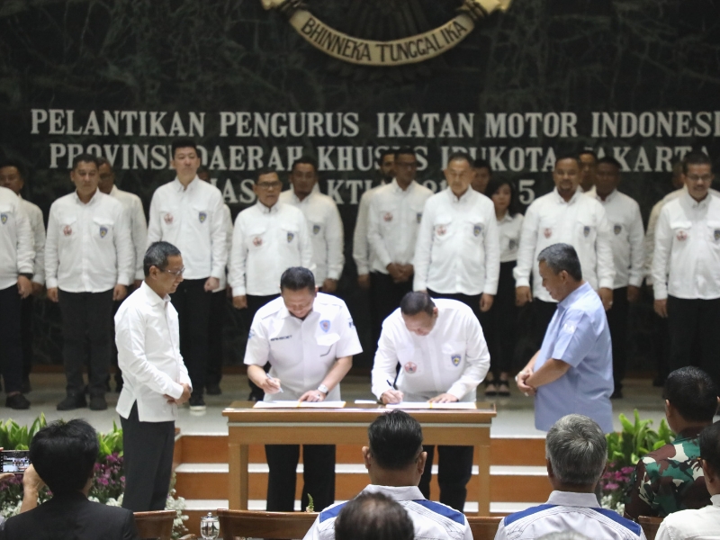Penjabat (Pj) Gubernur DKI Jakarta, Heru Budi Hartono menghadiri pelantikan 29 anggota pengurus Ikatan Motor Indonesia (IMI) DKI Jakarta masa bakti 2021-2025 oleh Ketua Umum IMI Pusat, Bambang Soesatyo, di Balai Kota Jakarta, Jakarta Pusat, Senin (16/1). Hadir juga dalam pelantikan ini Ketua DPRD DKI Jakarta, Prasetyo Edi Marsudi; Kapolda Metro Jaya, Irjen Pol Fadil Imran; Pangdam Jaya, Mayjen TNI Untung Budiharto; Ketua IMI DKI Jakarta, Anondo Eko; serta Deputi Gubernur Bidang Kebudayaan dan Pariwisata DKI Jakarta, Marullah Matali.(Photographer: Mochamad Tresna Suheryanto/beritajakarta.id)