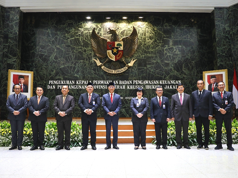Penjabat (Pj) Gubernur DKI Jakarta, Heru Budi Hartono mengukuhkan Kepala Perwakilan Badan Pengawasan Keuangan dan Pembangunan (BPKP) DKI Jakarta, Alexander Rubi Satyoadi, di Balai Agung Balai Kota DKI Jakarta, Senin (9/1). Pj Gubernur berharap Kepala Perwakilan BPKP DKI Jakarta dapat bekerja dan menjalankan tugasnya dengan baik. (Foto: Nugroho Sejati/beritajakarta.id)