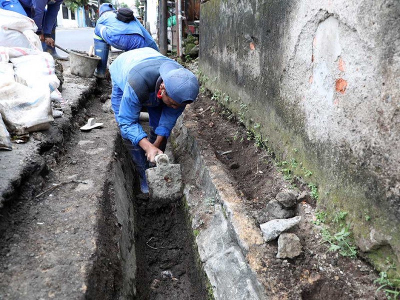 Satuan Pelaksana Sumber Daya Air (Satpel SDA) Kecamatan Pancoran, Jakarta Selatan, Selasa (3/1), melakukan pengurasan saluran mikro di Jalan Pengadegan Selatan V, Kelurahan Pengadegan. Kegiatan ini dilakukan untuk memperlancar aliran air sehingga dapat meminimalisir terjadinya genangan. (Foto: Reza Hapiz/beritajakarta.id)