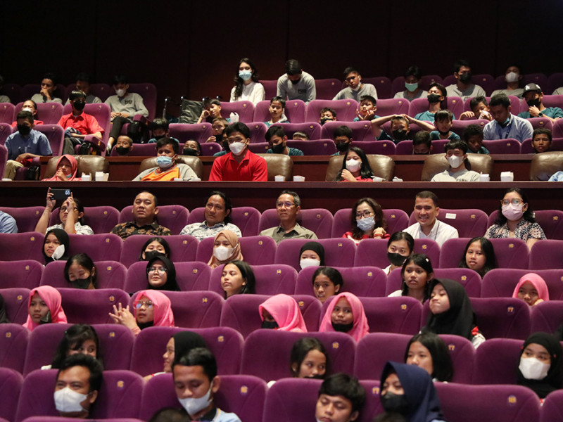 Penjabat (Pj) Gubernur DKI Jakarta, Heru Budi Hartono menghadiri kegiatan nonton bareng (nobar) film \"Tegar\" bersama anak yatim, piatu dan berkebutuhan khusus di Studio XXI Epicentrum, Setiabudi, Jakarta Selatan, Minggu (25/12). Selain menyapa dan berinteraksi, Heru juga membagikan bingkisan secara anak-anak tersebut. (Foto: Reza Hapiz/beritajakarta.id)