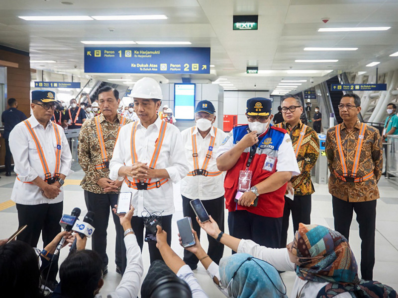Penjabat (Pj) Gubernur DKI Jakarta, Heru Budi Hartono, turut meninjau proyek Stasiun Light Rail Transit (LRT) Taman Mini Indonesia Indah (TMII) dan Stasiun Manggarai mendampingi Presiden Joko Widodo, Senin (26/12). Pemprov DKI akan mendukung optimalisasi proyek stasiun LRT dan Kereta Rel Listrik (KRL) dengan pembangunan sarana dan prasarana sekitar stasiun. (Foto: Nugroho Sejati/beritajakarta.id)