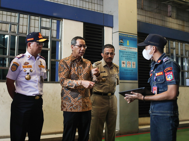 Penjabat (Pj) Gubernur DKI Jakarta, Heru Budi Hartono, melakukan peninjauan ke Unit Pengelola Pengujian Kendaraan Bermotor (UP PKB) Ujung Menteng, Kecamatan Cakung, Jakarta Timur, Senin, (26/12). Peninjauan tersebut untuk memastikan pelayanan di UP PKB Ujung Menteng berjalan dengan baik dan lancar. (Foto: Nugroho Sejati/beritajakarta.id)