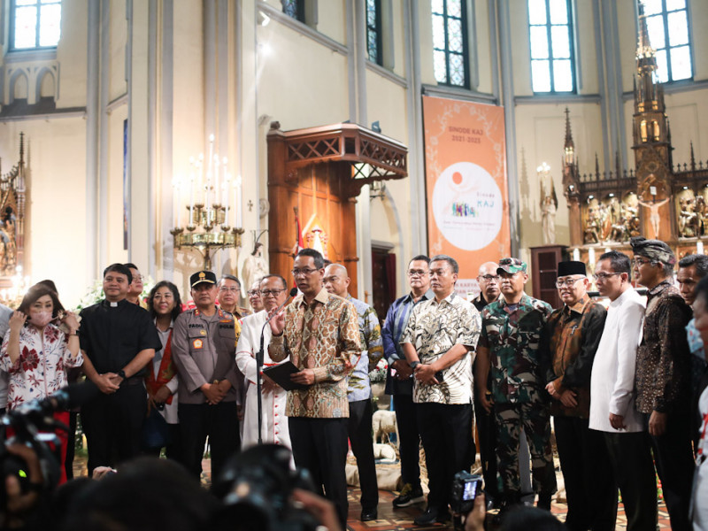 Penjabat (Pj) Gubernur DKI Jakarta, Heru Budi Hartono bersama jajaran Forum Komunikasi Pimpinan Daerah (Forkopimda) melakukan kunjungan ke sejumlah gereja di wilayah Jakarta Pusat, Sabtu (24/12). Adapun gereja-gereja yang dikunjungi dalam rangka menyambut Natal tahun 2022 tersebut adalah GPIB Immanuel, Gereja Katedral Jakarta, Gereja Katolik St. Ignatius Loyola, dan GPIB Paulus. (Foto: Nugroho Sejati/beritajakarta.id)