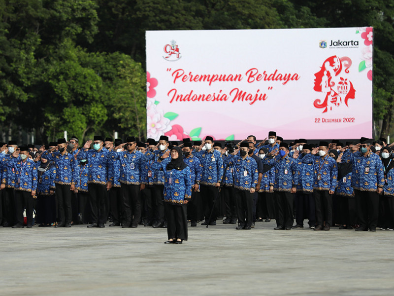 Pemerintah Provinsi (Pemprov) DKI Jakarta menggelar peringatan Hari Ibu ke-94 di lapangan IRTI Monas, Gambir, Jakarta Pusat, Kamis (22/12). Deputi Gubernur Bidang Kebudayaan dan Pariwisata, Marullah Matali selaku Inspektur Upacara (Irup) mengajak kaum perempuan Indonesia untuk terus berkarya, menjadi sosok yang mandiri, kreatif, inovatif, percaya diri serta terus meningkatkan kualitas dan kapabilitas. (Foto: Mochamad Tresna Suheryanto/beritajakarta.id)