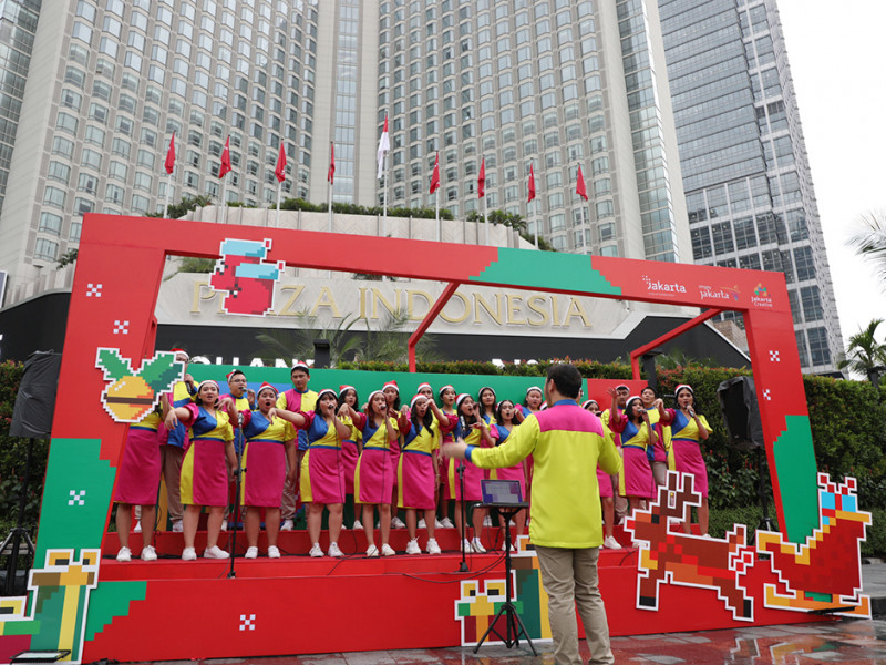 Lantunan kidung Natal menggema di Bundaran Hotel Indonesia (HI), Jalan MH Thamrin, Jakarta Pusat, Kamis (22/12). Penampilan Y2K Choir sukses menghibur warga yang melintas. Bahkan, sejumlah warga dari luar Jakarta sengaja hadir untuk menikmati kegiatan Christmas Carol di Bundaran HI ini. (Foto: Reza Hapiz/beritajakarta.id)
