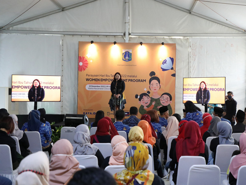 Bertepatan dengan peringatan Hari Ibu ke-94, Dinas Perindustrian, Perdagangan, Koperasi, Usaha Kecil dan Menengah (PPKUKM) DKI Jakarta menggelar workshop membatik dan bazar di Halaman Kantor Kecamatan Cilincing, Jakarta Utara, Kamis (22/11). Peringatan Hari Ibu melalui kegiatan pemberdayaan ekonomi perempuan ini diharapkan menjadi momentum peningkatan peran ibu dalam menopang ekonomi keluarga melalui UMKM. (Foto: Reza Hapiz/beritajakarta.id)