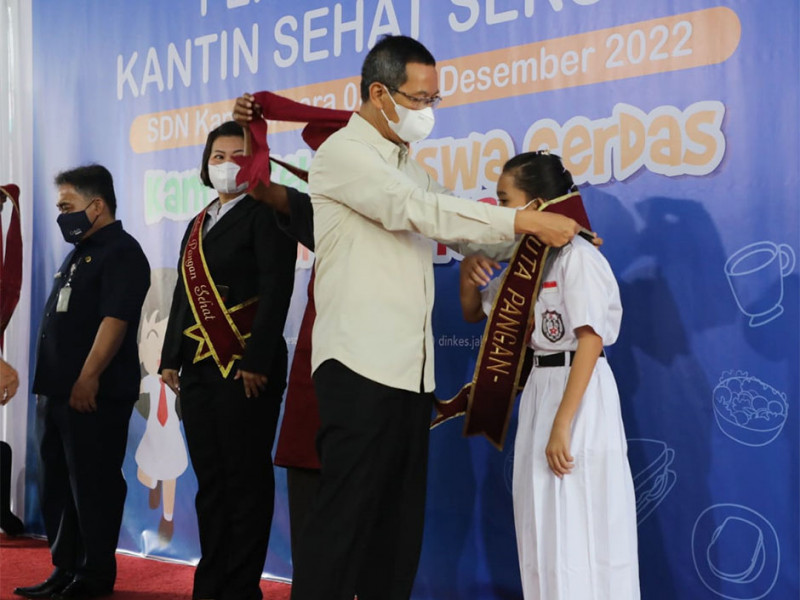 Penjabat (Pj) Gubernur DKI Jakarta, Heru Budi Hartono melakukan pencanangan Sertifikasi Kantin Sehat Sekolah di SDN 03 Kapuk Muara, Penjaringan, Jakarta Utara, Rabu (14/12). Kantin sehat sekolah ini penting untuk melindungi serta mewujudkan kebutuhan gizi yang cukup untuk peserta didik. (Foto: Mochamad Tresna Suheryanto/beritajakarta.id)