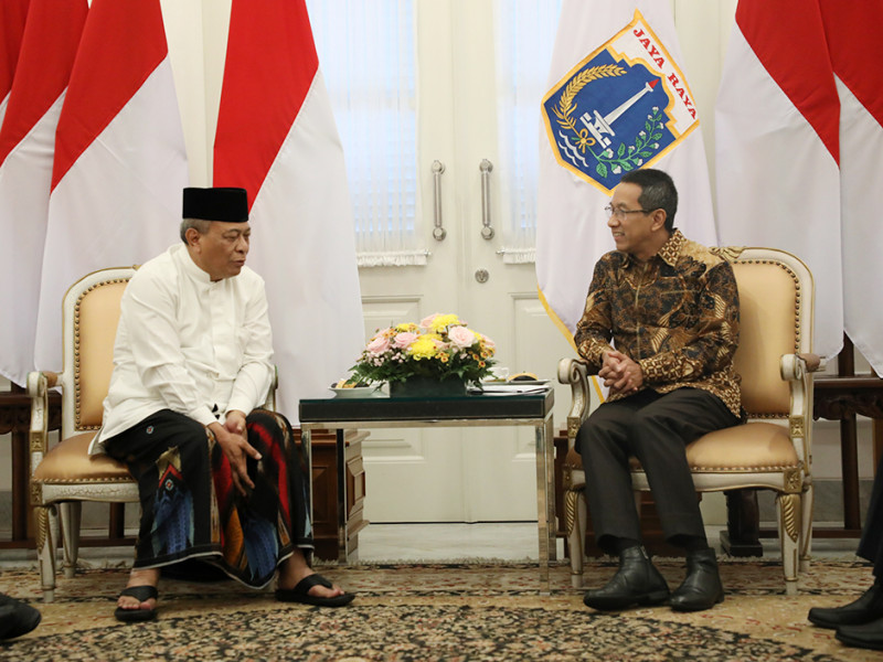 Penjabat (PJ) Gubernur DKI Jakarta, Heru Budi Hartono, menerima audiensi Pengurus Wilayah Nahdlatul Ulama (PWNU) DKI Jakarta di Ruang Tamu Utama, Gedung Balai Kota, Kamis (15/12). Ketua PWNU DKI Jakarta, Samsul Ma\'arif mengatakan, selain silaturahmi pertemuan ini juga membahas kesiapan pihaknya mengikuti Pekan Olahraga dan Seni (Porseni) NU yang dihelat di Solo, Jawa Tengah pada 2023 mendatang. (Foto: Mochamad Tresna Suheryanto/beritajakarta.id)
