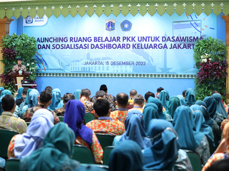 Tim Penggerak Pemberdayaan Kesejahteraan Keluarga (TP PKK) bersama Dinas Pemberdayaan Perlindungan Anak dan Pengendalian Penduduk (PPAPP) DKI Jakarta melakukan peluncuran Ruang Belajar untuk Dasawisma dan Sosialisasi Dashboard Keluarga Jakarta. Acara peluncuran tersebut digelar secara hybrid di Auditorium Gedung PKK Melati Jaya Jalan Kebagusan Raya, Pasar Minggu, Jakarta Selatan, Kamis (15/12). (Foto: Mochamad Tresna Suheryanto/beritajakarta.id)