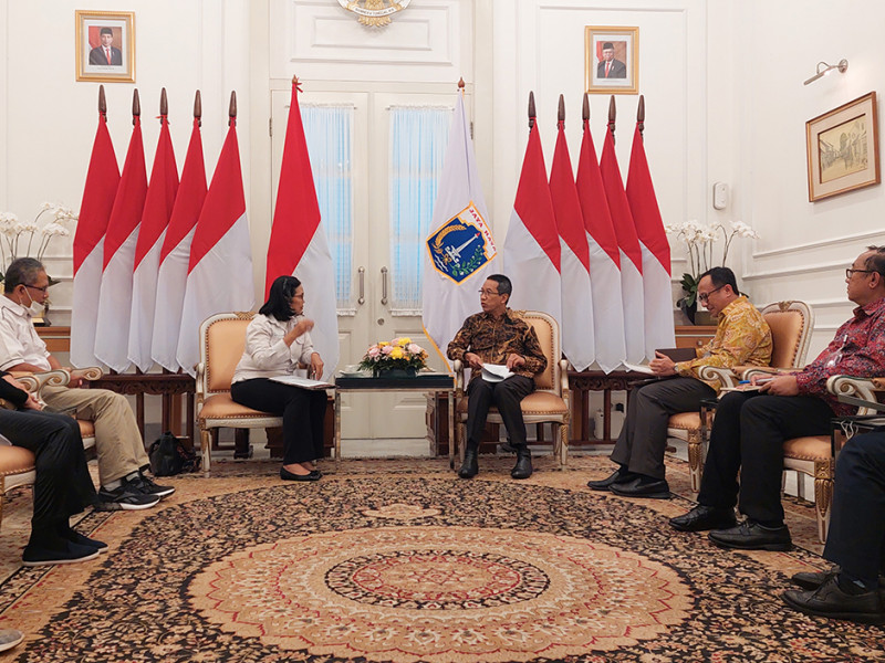 Penjabat (Pj) Gubernur DKI Jakarta, Heru Budi Hartono, menerima audiensi pegiat Gerakan Ciliwung Bersih (GCB) di Balai Kota DKI Jakarta, Gambir, Jakarta Pusat, Kamis (15/12). Dalam audiensi tersebut, Heru menyatakan Pemprov DKI berkomitmen mendukung program-program GCB dengan fasilitas dan bantuan dana operasional. (Foto: Nugroho Sejati/beritajakarta.id)