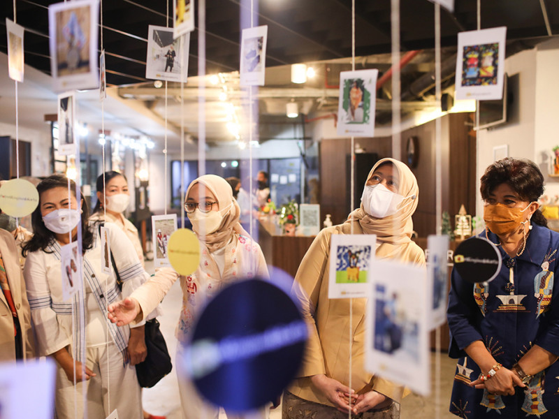 Penjabat (Pj) Ketua Dewan Kerajinan Nasional Daerah (Dekranasda) Provinsi DKI Jakarta, Mirdiyanti Heru Budi Hartono, menyerahkan hadiah secara simbolis kepada pemenang kompetisi Potret Kerajinan Jakarta (PKJ) 2022 di Jakarta Creative Hub (JCH), Tanah Abang, Jakarta Pusat, Rabu (14/12). Kompetisi PKJ merupakan kegiatan lanjutan dari workshop fotografi kerajinan yang telah diselenggarakan secara daring. (Foto: Nugroho Sejati/beritajakarta.id)