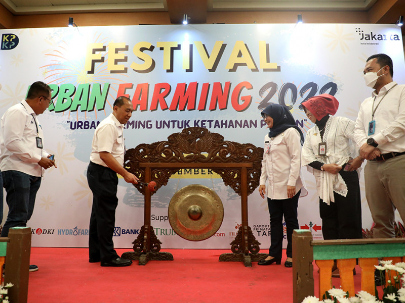 Penjabat Sekretaris Daerah (Pj Sekda) Provinsi DKI Jakarta, Uus Kuswanto membuka pelaksanaan Festival Urban Farming yang diinisiasi Dinas Ketahanan Pangan, Kelautan dan Pertanian (KPKP) DKI Jakarta di Blok G lantai dasar, Balai Kota DKI Jakarta, Rabu (14/12). Festival Urban Farming yang berlangsung mulai 14-15 Desember 2022. (Foto: Mochamad Tresna Suheryanto/beritajakarta.id)