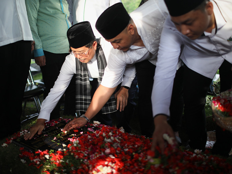 Deputi Gubernur DKI Jakarta Bidang Budaya dan Pariwisata, Marullah Matali melakukan ziarah dan tabur bunga di makam Abraham Lunggana atau akrab disapa Haji Lulung di Taman Pemakaman Umum (TPU) Karet Bivak, Tanah Abang, Jakarta Pusat, Rabu (14/12) sore. Semasa hidupnya, Haji Lulung merupakan tokoh yang disegani dan menduduki jabatan tinggi. (Foto: Nugroho Sejati/beritajakarta.id)