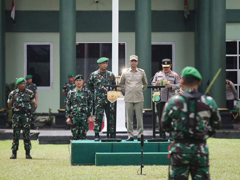 Penjabat (Pj) Gubernur DKI Jakarta, Heru Budi Hartono menghadiri upacara pembukaan sinergi Dikmaba TNI AD dan Diktukba Polri di Lapangan Chandradimuka Rindam Jaya, Pasar Rebo, Jakarta Timur, Senin (12/12). Heru bersama Pangdam Jaya Jayakarta Mayjen TNI Untung Budiharto dan Kapolda Metro Jaya Irjen Pol Mohammad Fadil Imran menjadi Inspektur Upacara pada Pembukaan Diklat Integrasi Kampus Kebangsaan Siswa Dikmaba TNI AD dengan Diktukba POLRI TA 2022. (Foto: Nugroho Sejati/beritajakarta.id)
