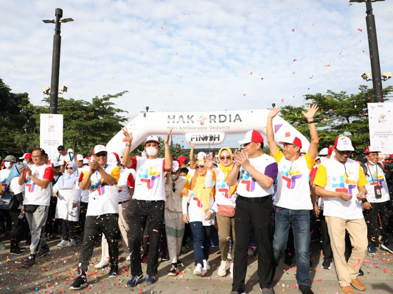 Pejabat Sekretaris Daerah (Pj Sekda) Provinsi DKI Jakarta, Uus Kuswanto bersama Ketua Komisi Pemberantasan Korupsi (KPK) RI, Firli Bahuri melepas start peserta jalan santai memperingati Hari Antikorupsi Sedunia (Hakordia) Tahun 2022 di Plaza Parkir Timur Gelora Bung Karno (GBK), Minggu (11/12). (Foto: Mochamad Tresna Suheryanto/beritajakarta.id)