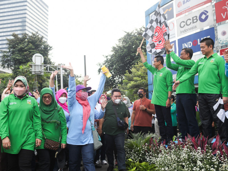 Penjabat (Pj) Gubernur DKI Jakarta, Heru Budi Hartono, melepas secara simbolis kegiatan jalan sehat pegawai di lingkungan Kota Administrasi Jakarta Selatan pada Hari Bebas Kendaraan Bermotor (HBKB) di Taman Budaya Dukuh Atas, Jakarta Pusat, Minggu pagi (4/12). Sekitar 4.500 orang yang terdiri dari para pegawai Kantor Wali Kota Administrasi Jakarta Selatan beserta keluarganya antusias mengikuti kegiatan jalan sehat. (Foto: Nugroho Sejati/beritajakarta.id)