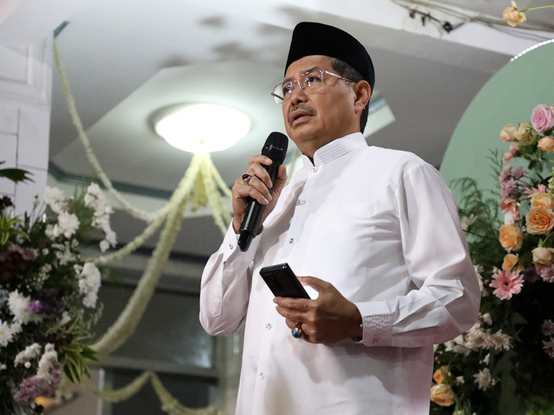 Sekretaris Daerah (Sekda) DKI Jakarta, Marullah Matali menghadiri peringatan Maulid Nabi Muhammad SAW di Musala Baitul Rohim, Jalan H Kelik, Kelapa Dua, Kebon Jeruk, Jakarta Barat, Kamis (1/12). Peringatan maulid bersamaan dengan Haul ke-17 Mu\'allim KH Muhammad Syafi\'i Hadzami. Adapun makna peringatan Maulid Nabi Muhammad adalah salah satu wujud cinta sekaligus rasa syukur kepada Allah SWT atas kelahiran Nabi Muhammad. (Foto: Mochamad Tresna Suheryanto/beritajakarta.id)