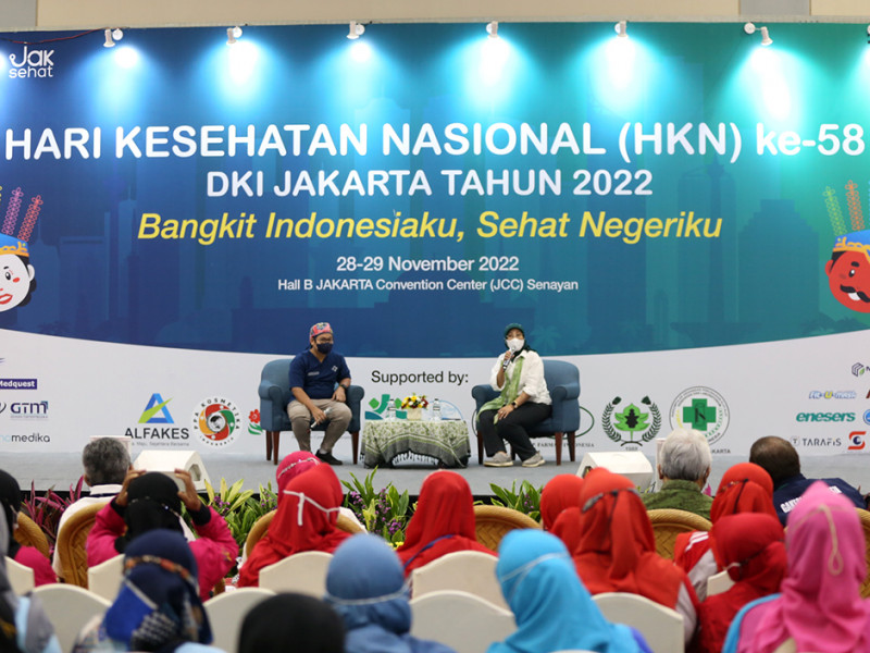 Pemerintah Provinsi (Pemprov) DKI Jakarta melalui Dinas Kesehatan (Dinkes) menghelat peringatan Hari Kesehatan Nasional (HKN) ke-58 Tingkat Provinsi DKI Jakarta di Hall B Jakarta Convention Center (JCC), Senayan, Jakarta Pusat, Senin (28/11). Kegiatan ini diisi dengan berbagai talkshow, pameran alat kesehatan, hingga layanan vaksinasi COVID-19. (Foto: Reza Hapiz/beritajakarta.id)